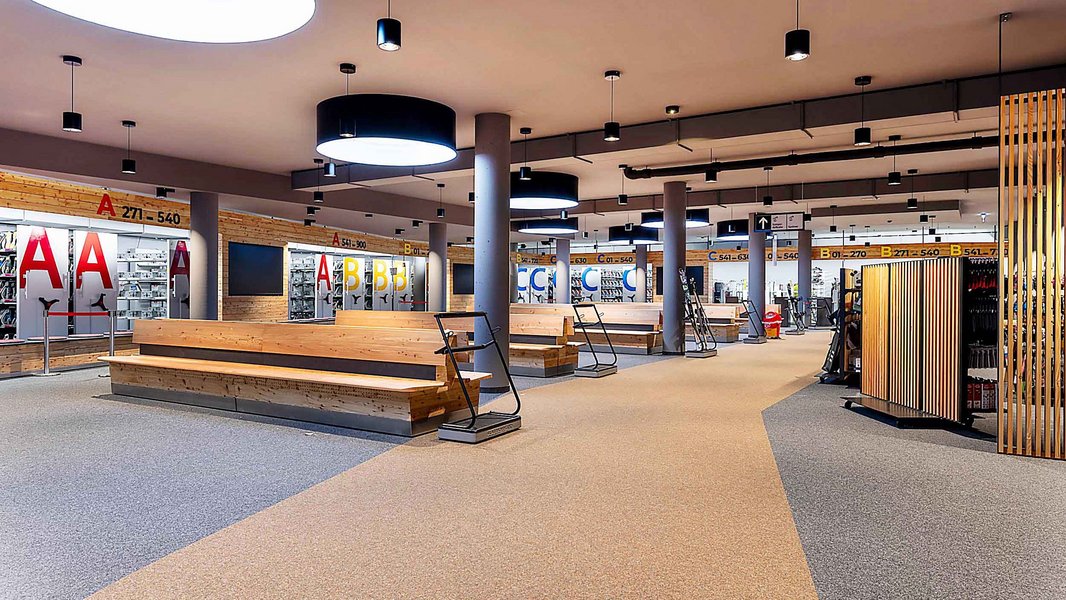 Für den Skiservice, Verleih und die Shopfläche wurde vom Büro Lichtdesign Robert Gratzel ein Lichtkonzept entwickelt, welches die Produkte richtig in Szene setzt und ein angenehmes Shoppingvergnügen ermöglicht. In Zusammenarbeit mit dem Lichtplanungsbüro, konnten wir unsere Flexibilittät beweisen, da es sich bei den meisten Leuchten um projektbezogen gefertigte Leuchten handelt, die speziell für diese Projekt entworfen und konstruiert wurden.